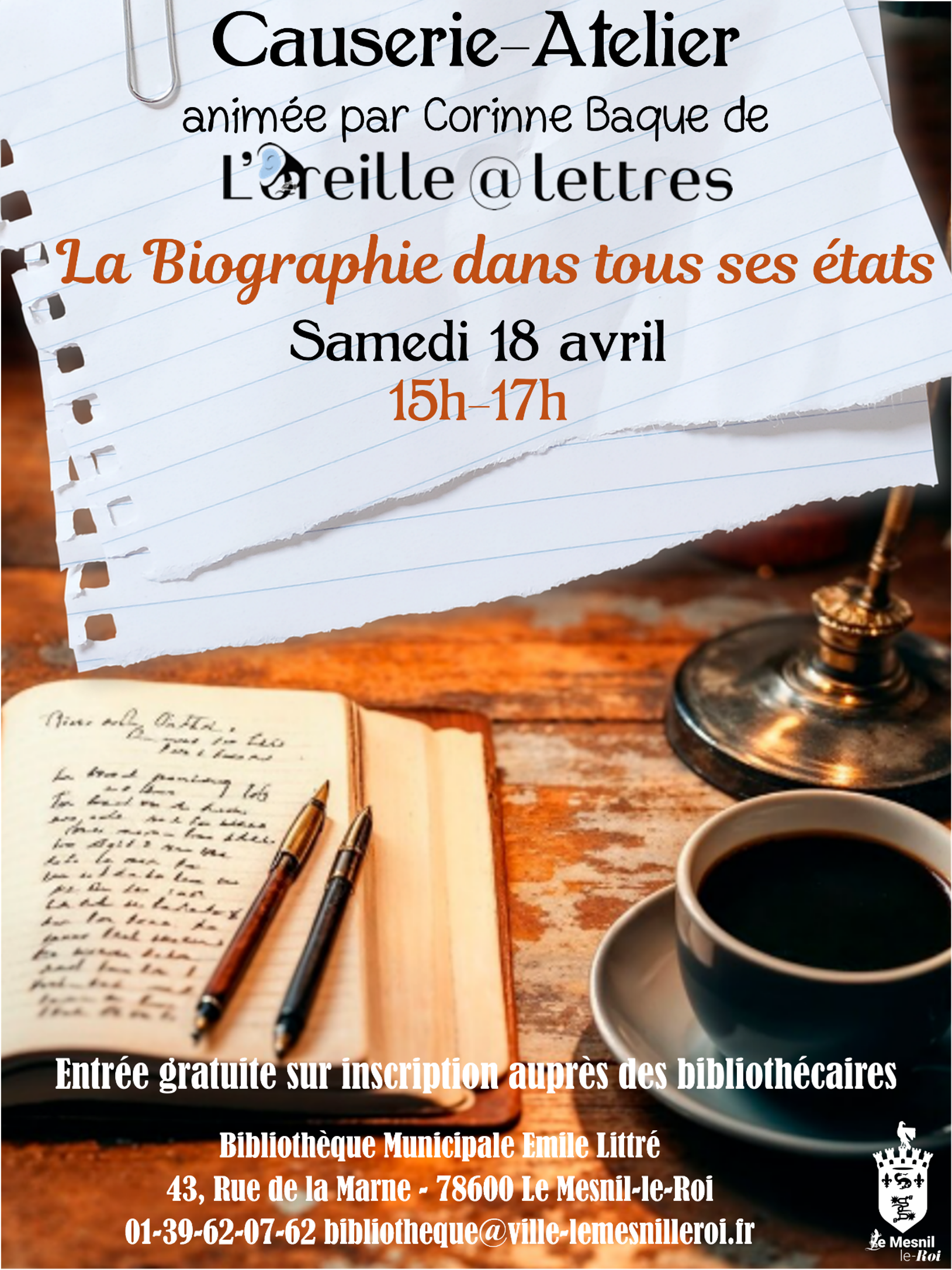 Bibliothèque du Mesnil-Le-Roi >> Actualités >> Causerie-atelier « La biographie dans tous ses états » samedi 18 avril de 15h à 17h