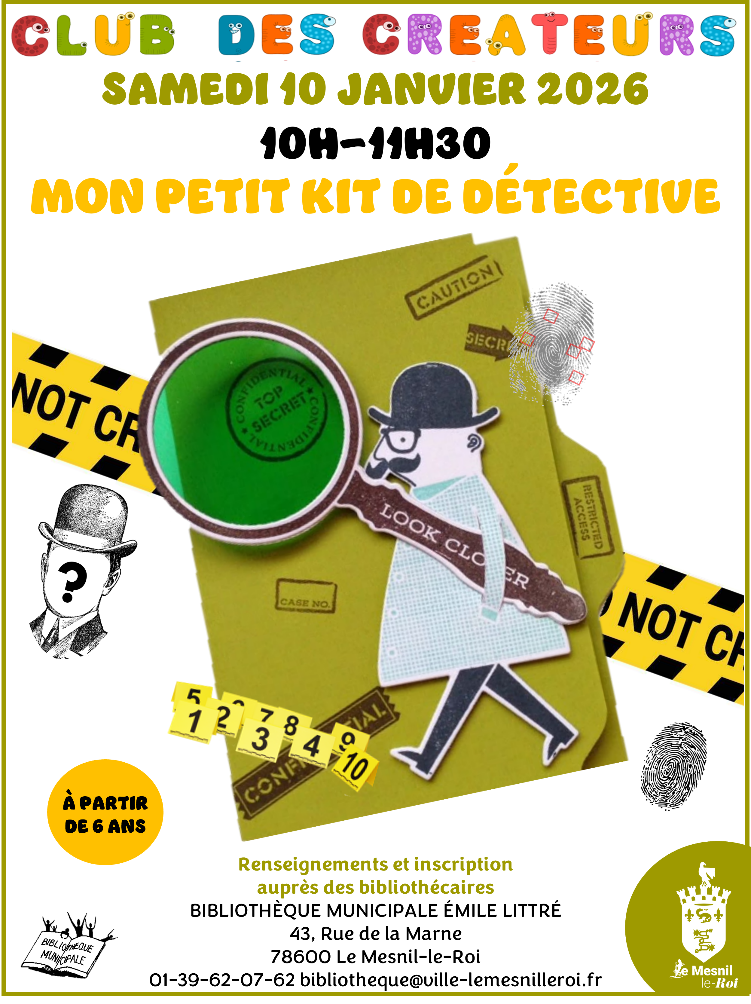 Bibliothèque du Mesnil-Le-Roi >> Actualités >> Club des Créateurs “Mon petit kit de détective” samedi 10 janvier 2026 à 10h